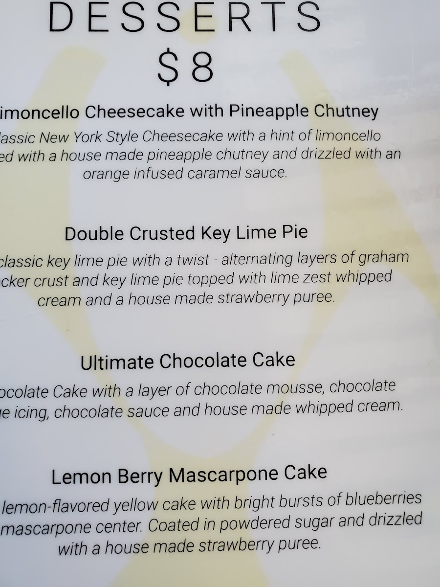 not too sweet, not too tart, housemade key lime pie layered with a double graham cracker crust, topped with lime whipped cream and drizzled with strawberry sauce